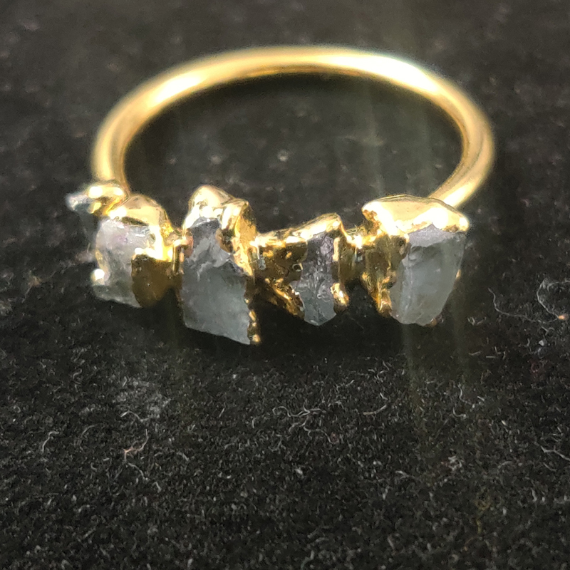 Natural Aquamarine Rough Gemstone Gold Electroplated Ring Size US 8