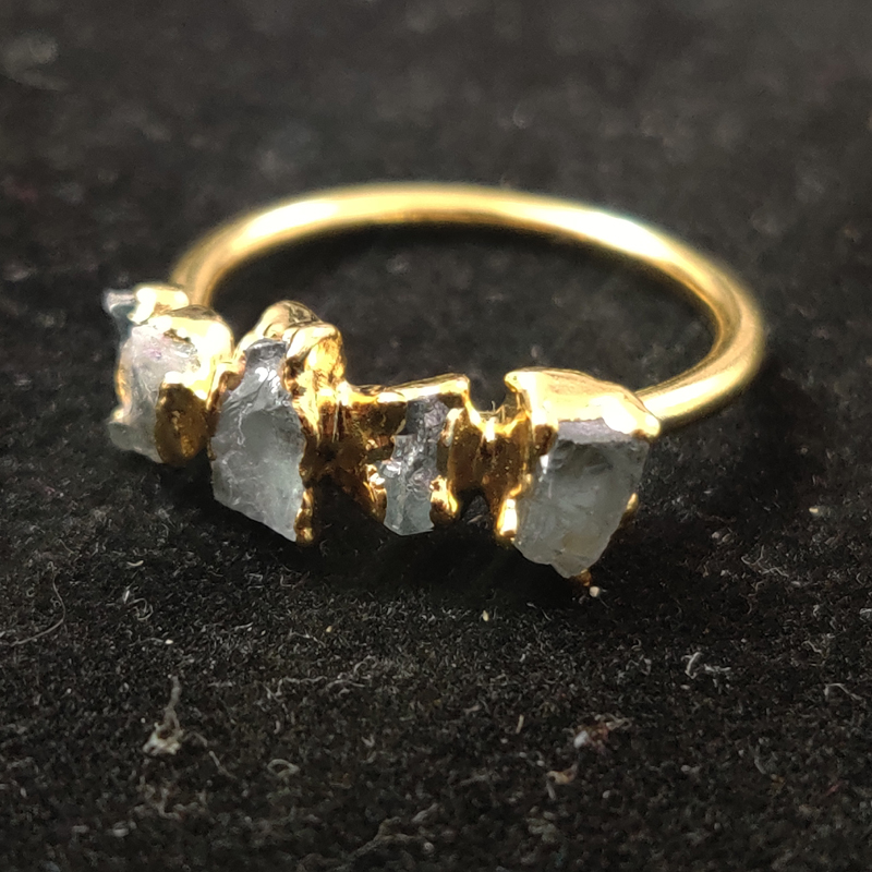 Ethnic style Handmade Aquamarine Rough Gemstone Gold Electroplated Ring Size US 8