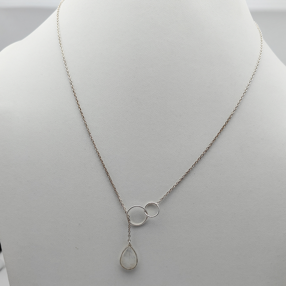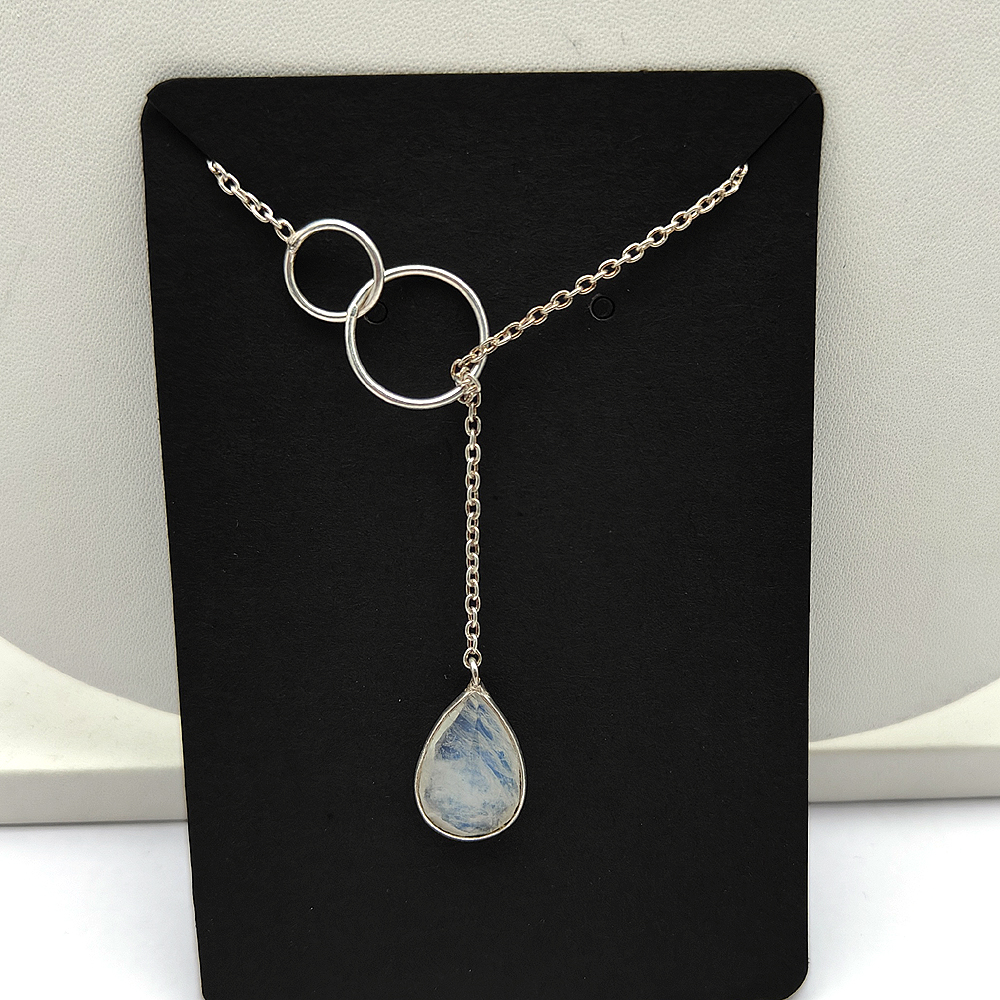 Rainbow Moonstone Pear lariat Necklace