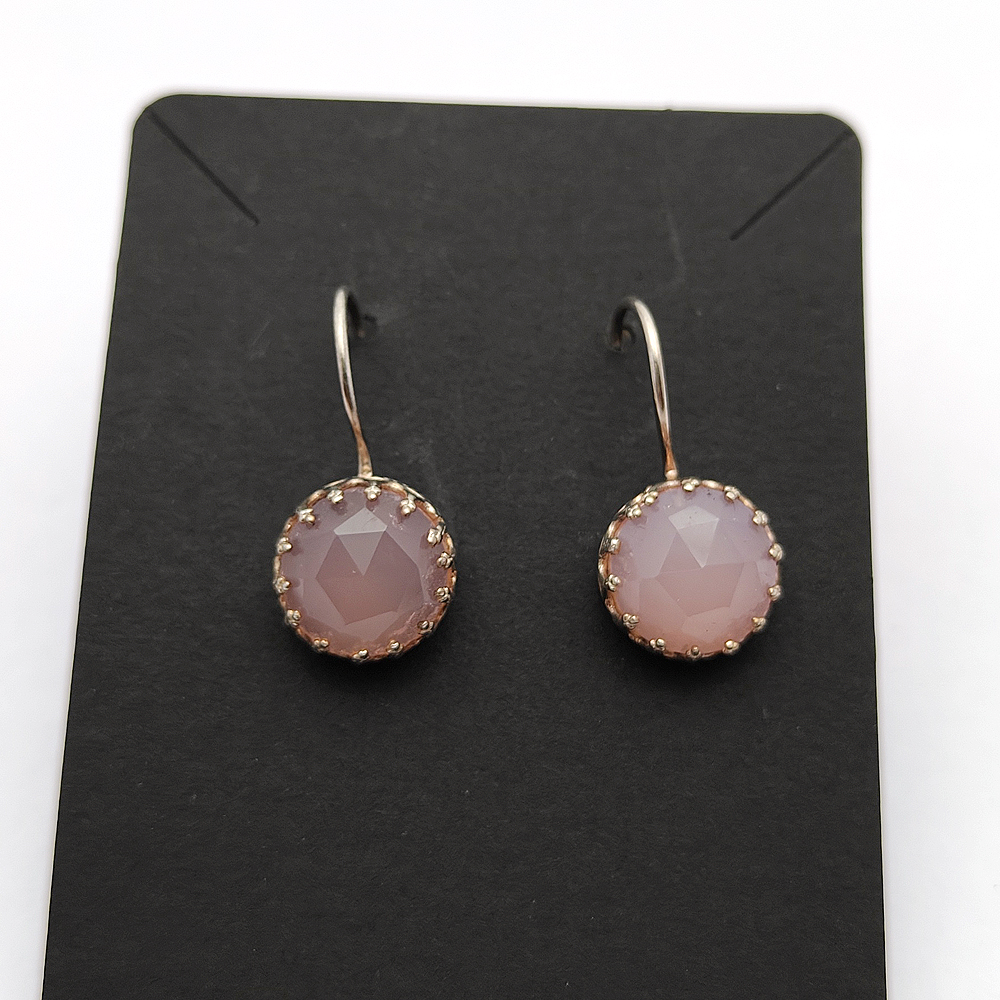 Shaped in a lovely round shape and studded with Rose quartz these Sterling Silver (92.5%) earrings are elegant and colourful.