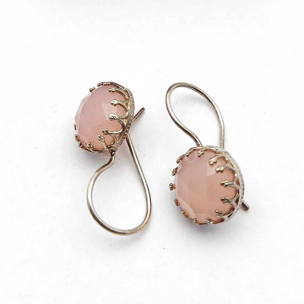Rose quartz 12mm round 925 Sterling Silver Designer Dangle Earring