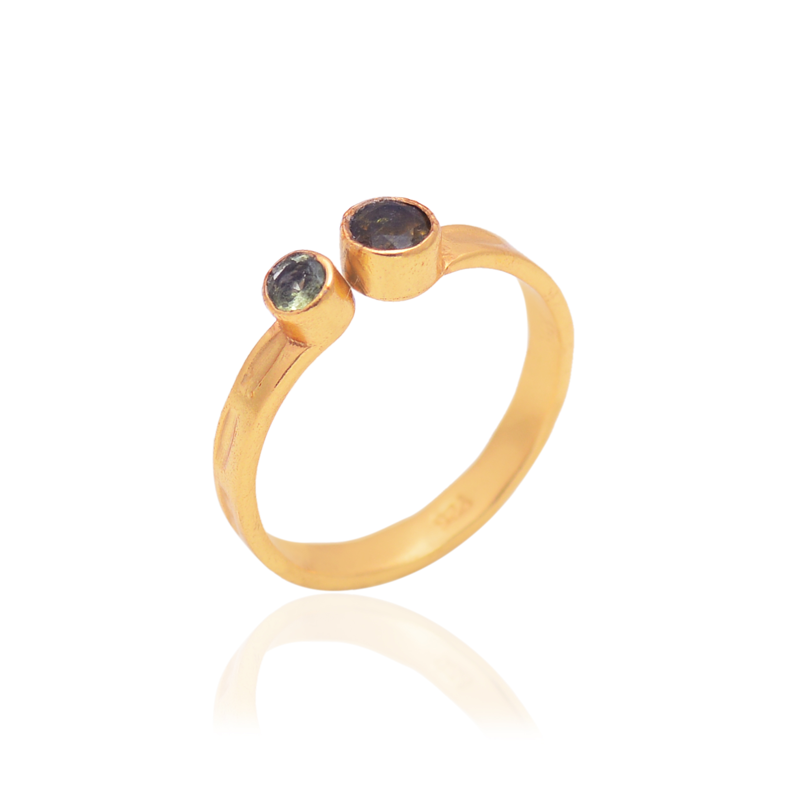 The Green Tourmaline double Stone Minimalist Ring is adorned with two smaller tourmaline stone set on a simple hammered band in the metal of your choice. Our minimalist style rings are more dainty and more delicate than our regular single stone rings. Looks beautiful by itself or even more gorgeous layered in between one or three of our simple stacking bands.