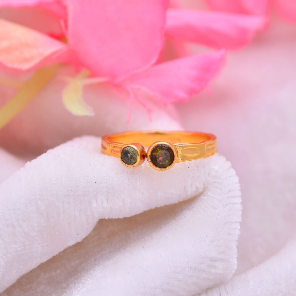 925 Silver Gold Plated Green Tourmaline Gemstone Open Adjustable Ring 1.9 gms