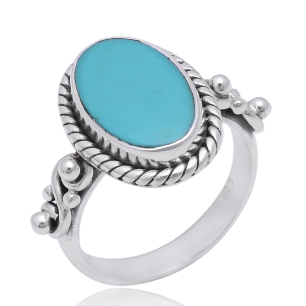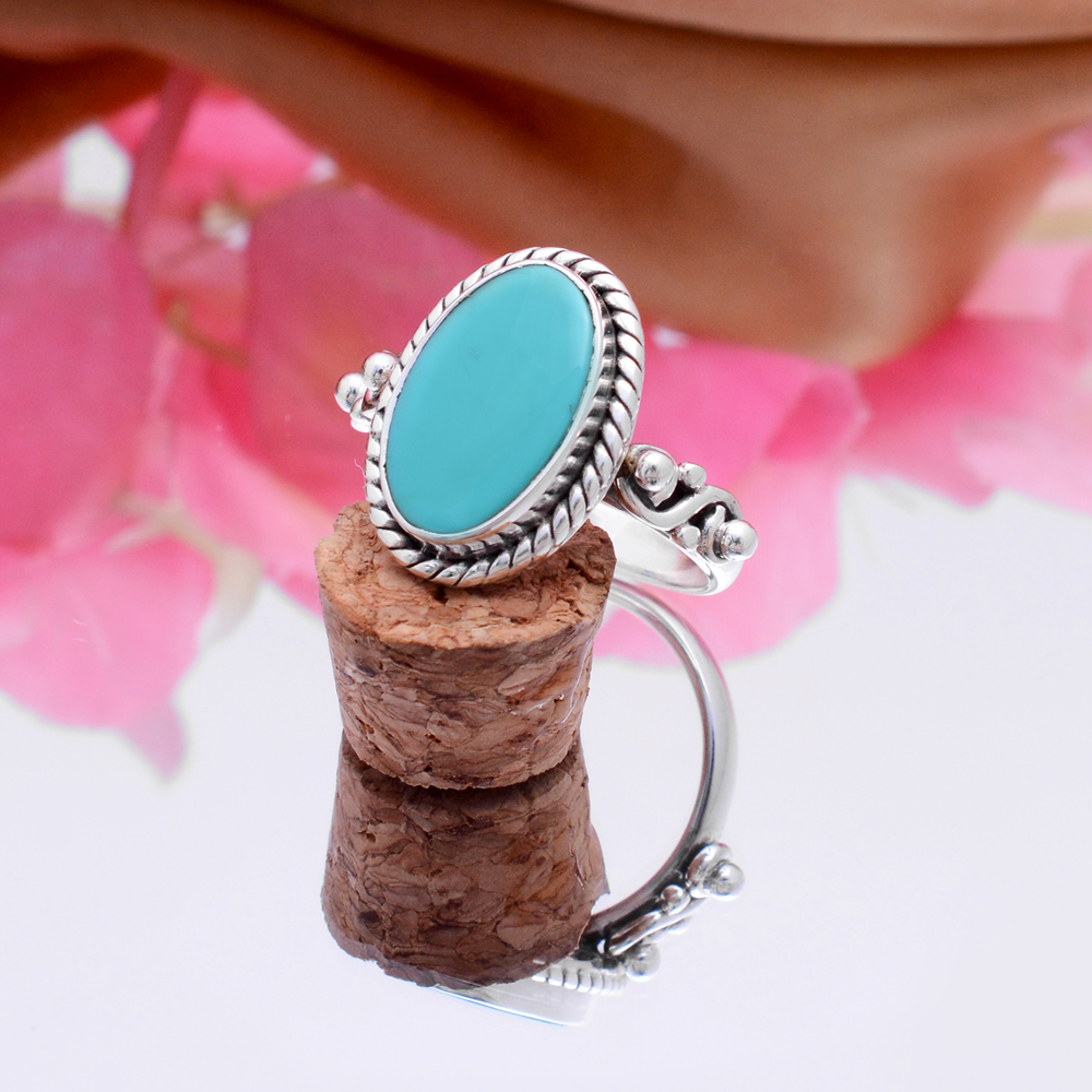 Natural Turquoise 14x10mm Oval Gemstone 925 Silver Ethnic Ring