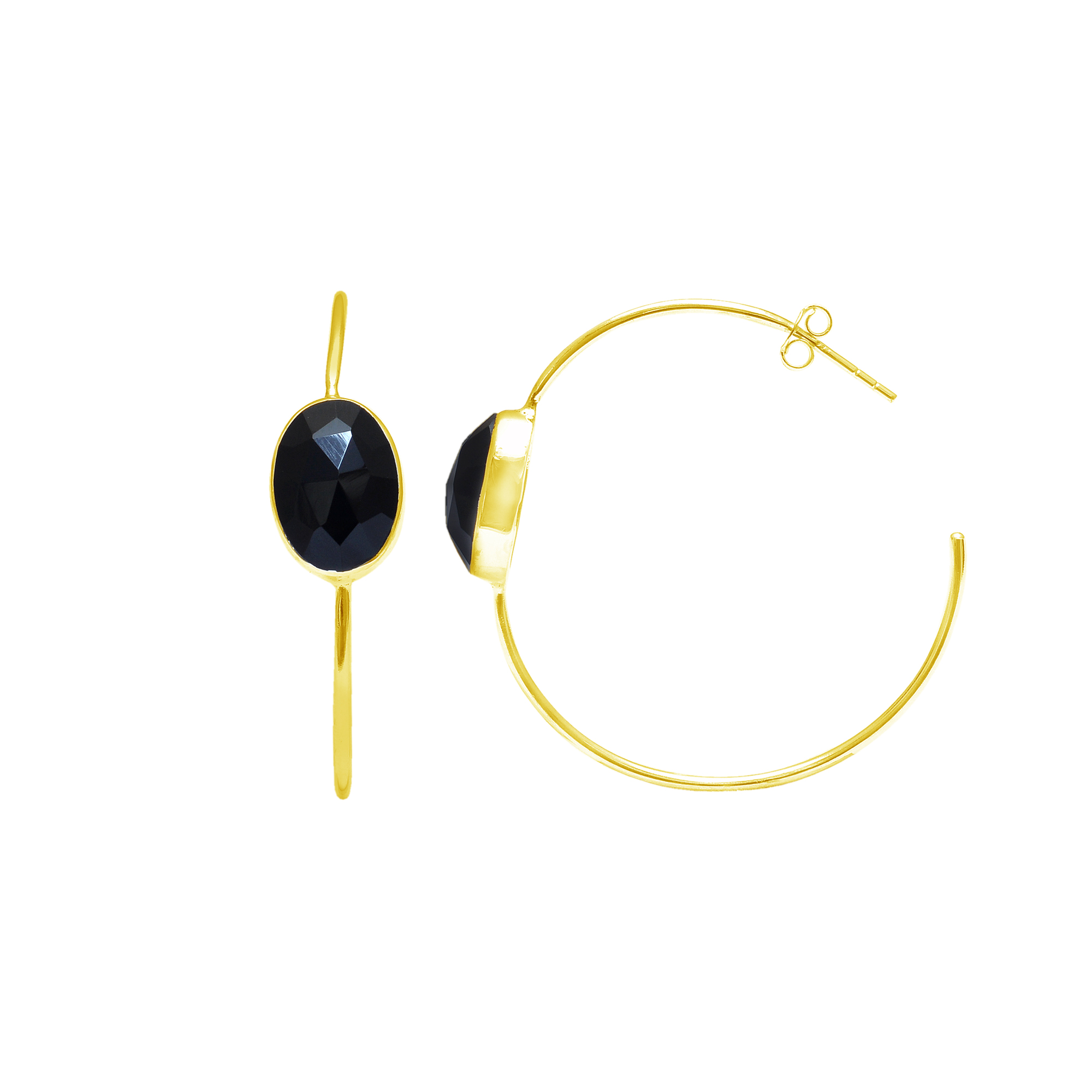 Black Onyx 12x10mm Oval Hoop gemstone earring 6.47 gms