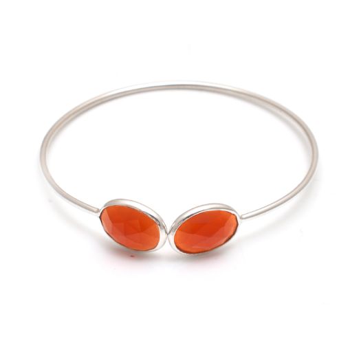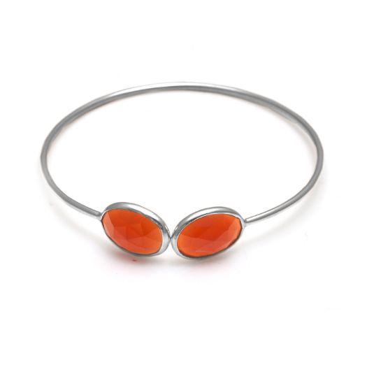 Carnelian Oval Gemstone Bezel Bracelet- Gemstone Bangle - Sterling Silver Bangle