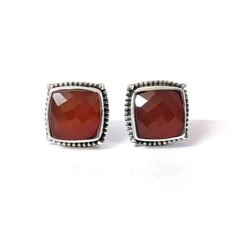 Carnelian gemstone silver stud earring
