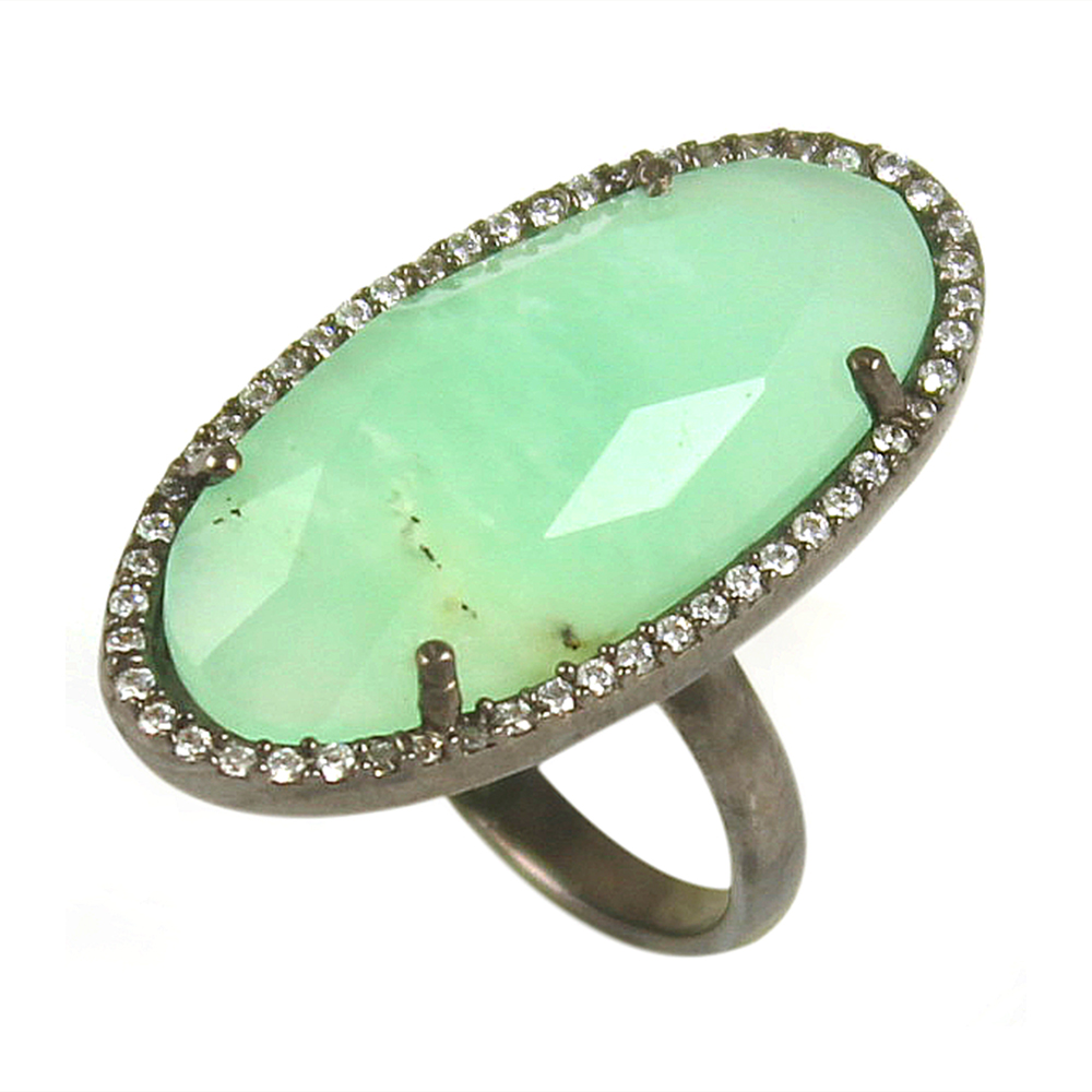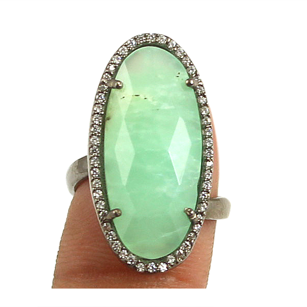 Chrysoprase oval silver pave set ring