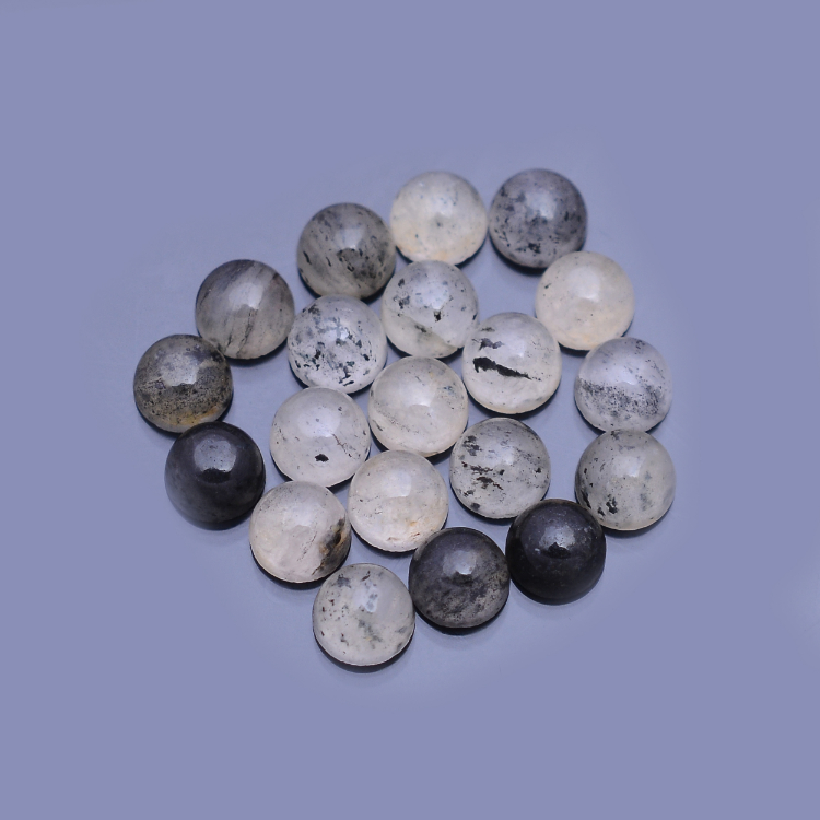 Natural black dot quartz 3mm round cab, Genuine quartz circle cabochon, good slat pepper color AA quality gemstone for ring, pendant or earrings.
