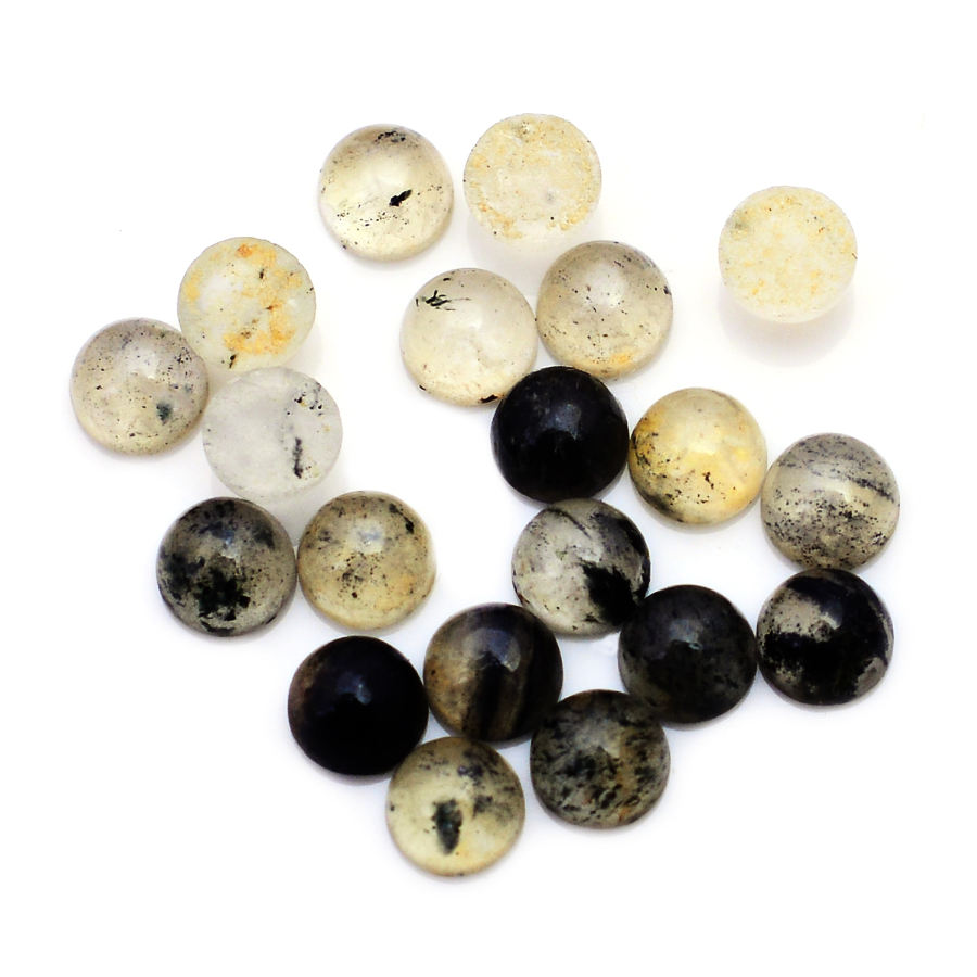 Natural black dot quartz 4mm round cab, Genuine quartz circle cabochon, good salt pepper color AA quality gemstone for ring, pendant or earrings.