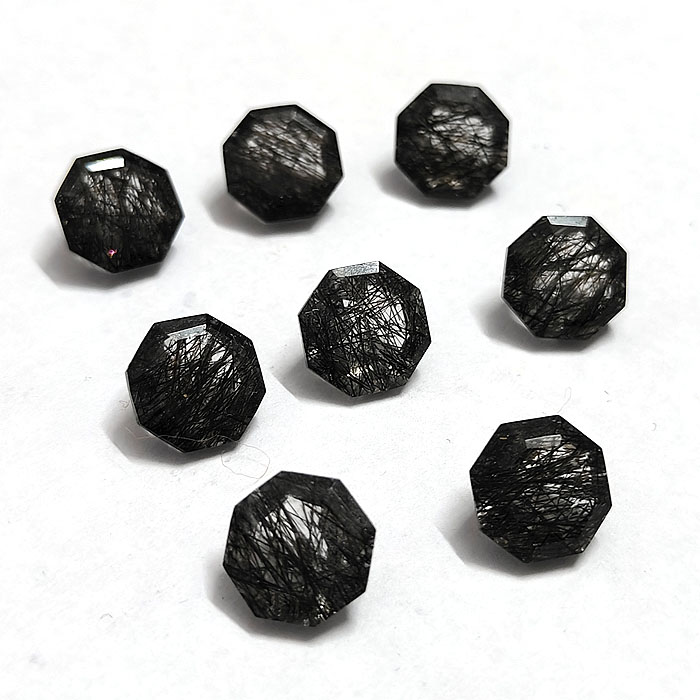 Good quality AAA natural black rutile quartz to be used in silver jewelry. Size is 10x10mm octagon cut and weight is 3.56 cts. It comes from Sri lanka. It is birthstone for April Month.