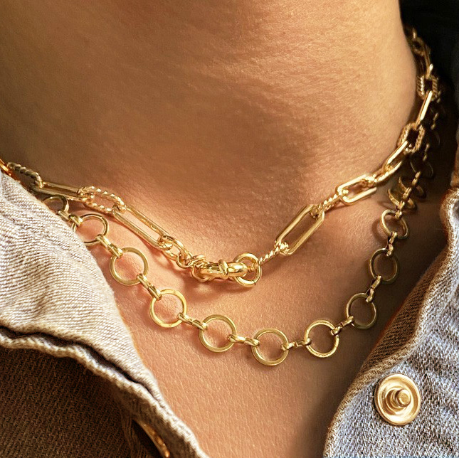 This delicate beautiful necklace is perfect for all ages girls, ladies or women. Wear this necklace alone, layered with other necklaces, or together with a pendant. A great addition for everyday or special occasion wears. Brass metal with 18K real gold plated chunky links finished with a lobster claw clasp. Brass metal is used to make this necklace. You can select plating as silver, gold vermeil, rose gold vermeil or black ruthenium.