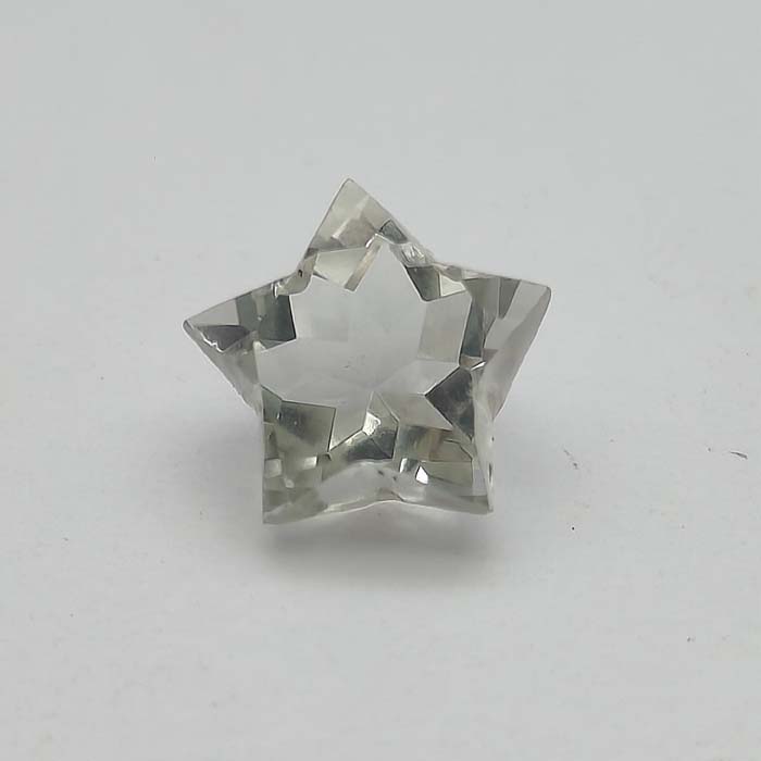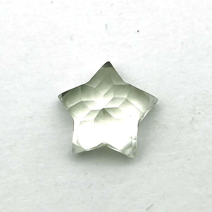 Iroc sales presents a beautiful piece of Green Amethyst. Shape is star and cutting is normal facet. Size is 10mm. Weight is 3.23 carat. Quality is AAA eye clean. Use this fabulous stone to make gold or silver jewelry.
