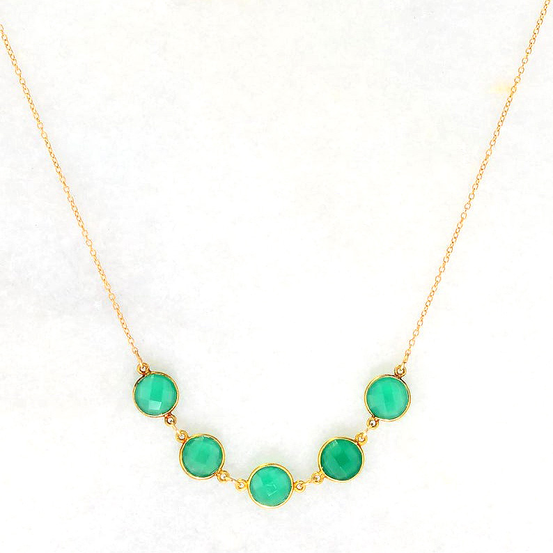 Green Onyx gemstone bezel silver chain necklace