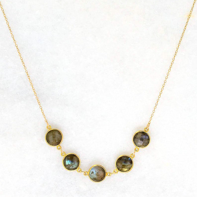 This delicate beautiful necklace is perfect for all ages girls, ladies or women. 925 sterling silver metal is used to make this pendant. Gemstone is green onyx that is mined in India Stone is sweet green colored. Stone size is 12mm round briolette. 5 stones are used to make this necklace. You can choose different gemstones from drop down menu. You can select plating as silver, silver with gold vermeil, silver with rose gold vermeil or silver with black ruthenium.