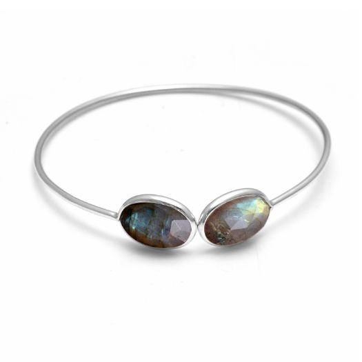 Labradorite Oval Gemstone Bezel Bracelet- Gemstone Bangle - Sterling Silver Bangle