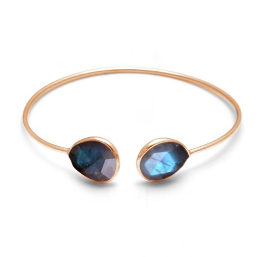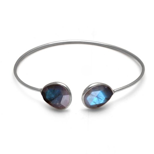 Labradorite Pear Gemstone Bezel Bracelet- Gemstone Bangle - Sterling Silver Bangle