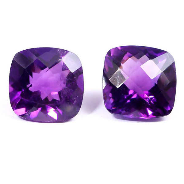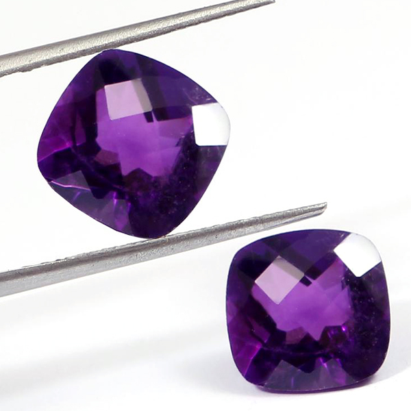 Good quality AAA eye clean quality natural amethyst to be used in fine jewelry. Size is 11x11mm cushion checker cut facet and weight is 10.5 cts. It comes from Brazil.