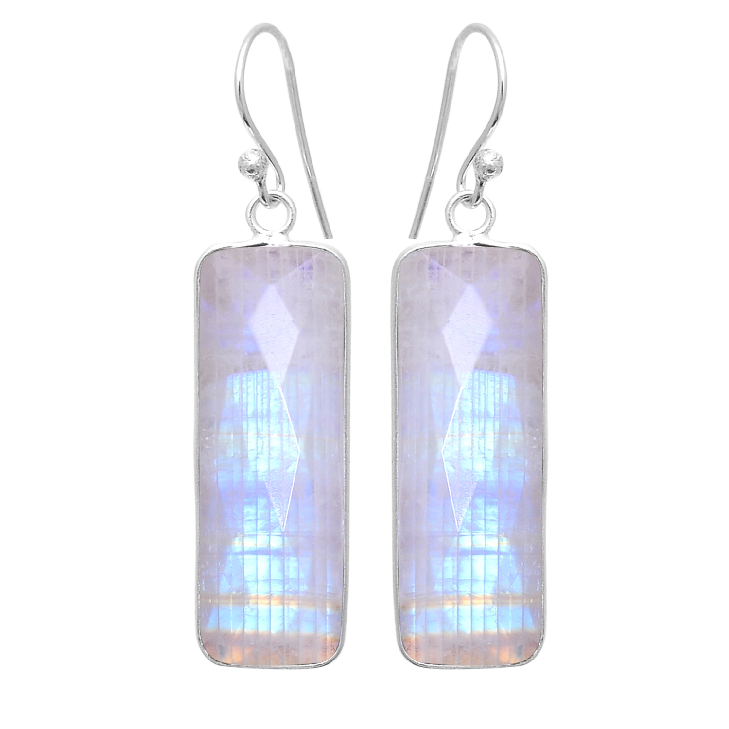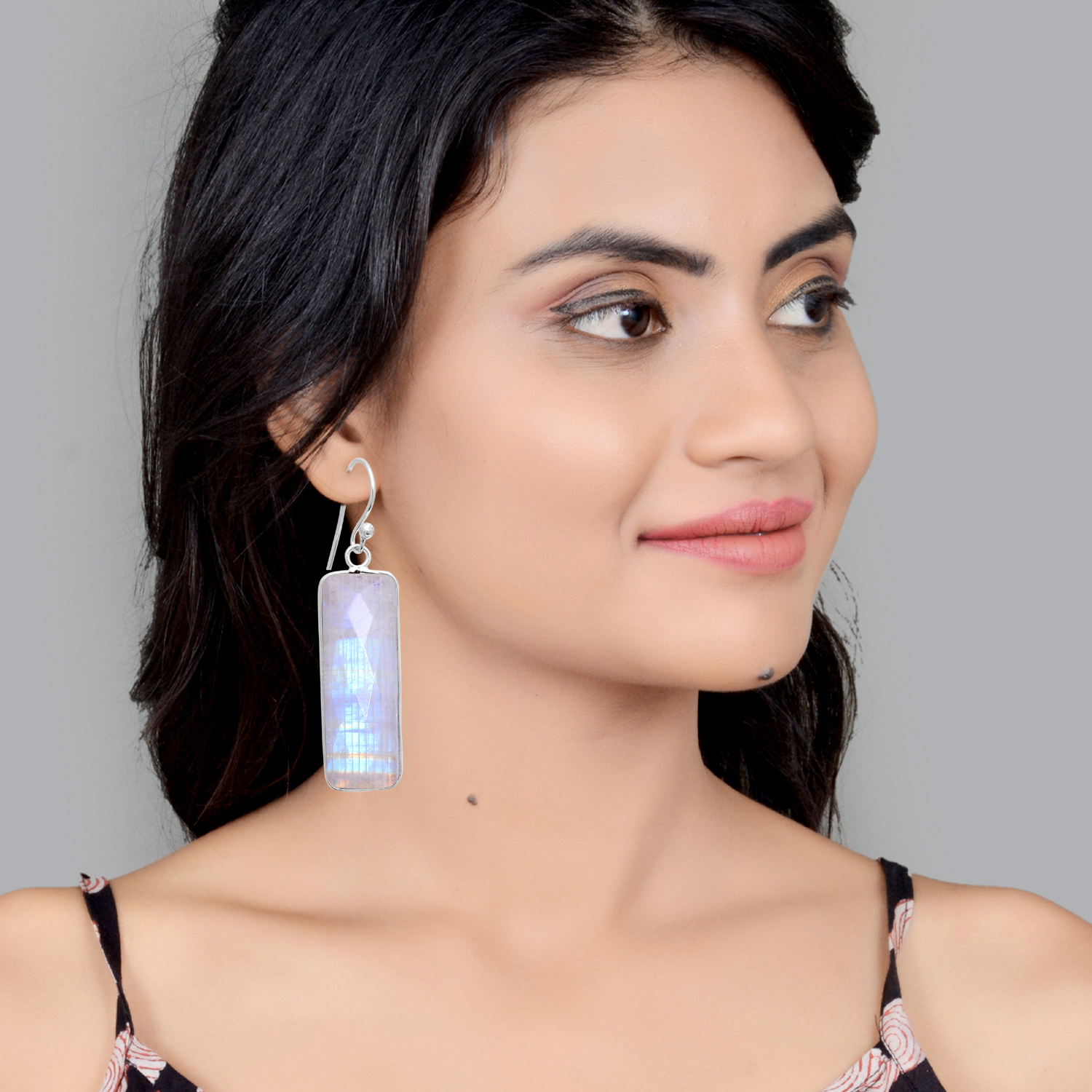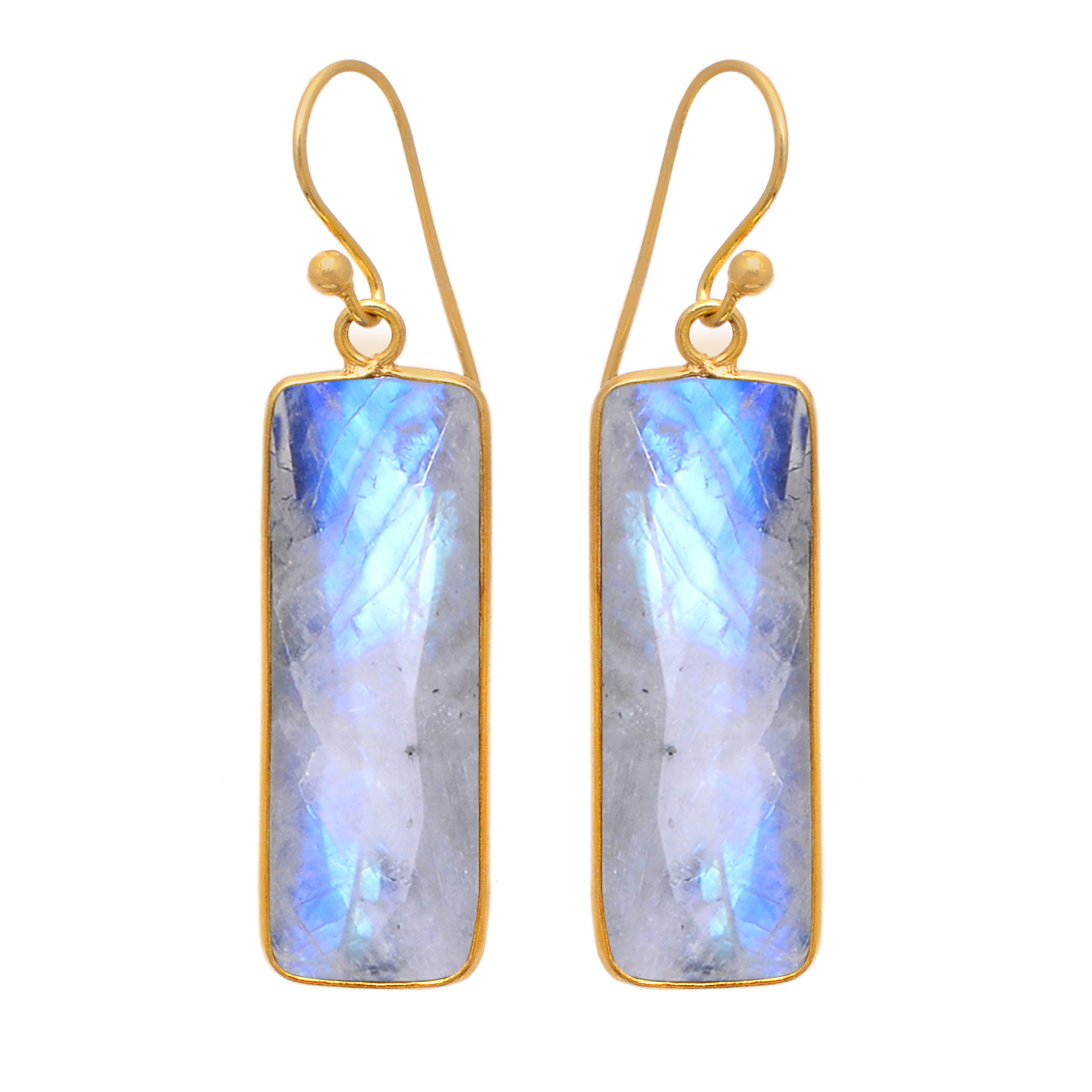 This beautiful Rainbow moonstone bezel earring is ready to sparkle everywhere. Best quality Rainbow moonstone is used to make this earring pair. Stone size is 30x10mm rectangle briolette (cutting both side). Metal is 925 sterling silver. You can choose plating as silver and gold plating is available.