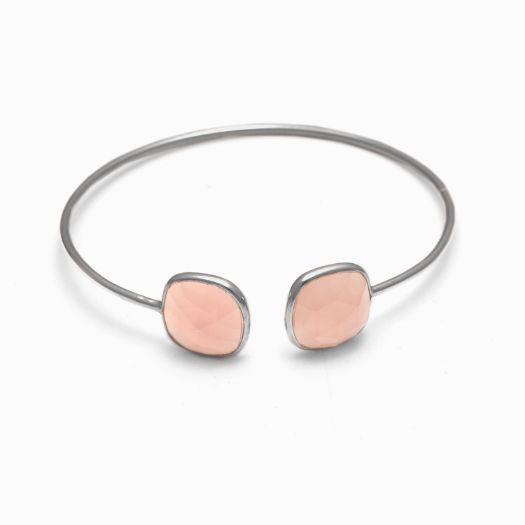 Rose Quartz Cushion Gemstone Bezel Bracelet- Gemstone Bangle - Sterling Silver Bangle