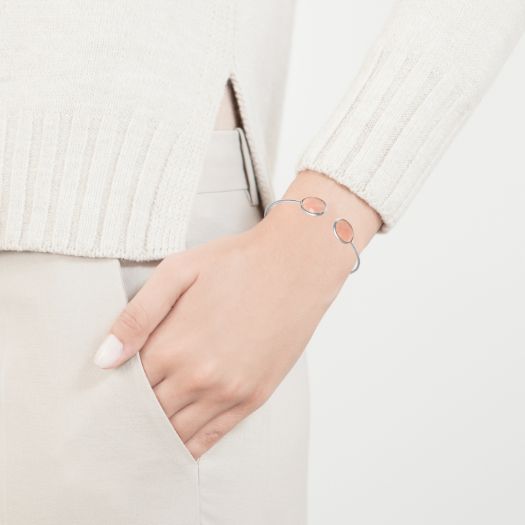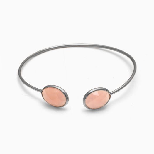 Rose Quartz Oval Gemstone Bezel Bracelet- Gemstone Bangle - Sterling Silver Bangle