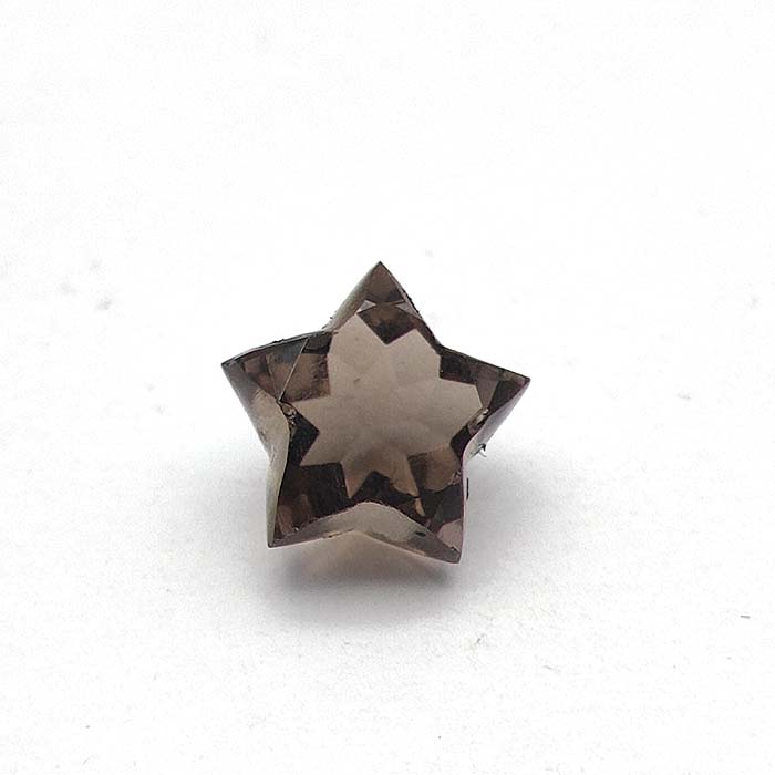 Iroc sales presents a beautiful piece of Smoky quartz Shape is star and cutting is normal facet. Size is 10mm. Weight is 3.1 carat. Quality is AAA eye clean. Use this fabulous stone to make gold or silver jewelry.
