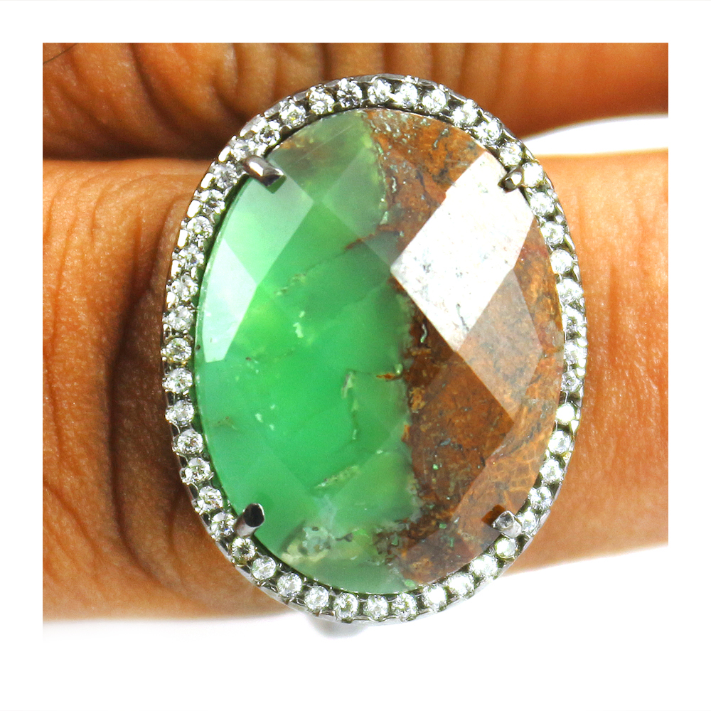 Vintage Chrysoprase oval Cut Cocktail Cubic Zirconia Ring
