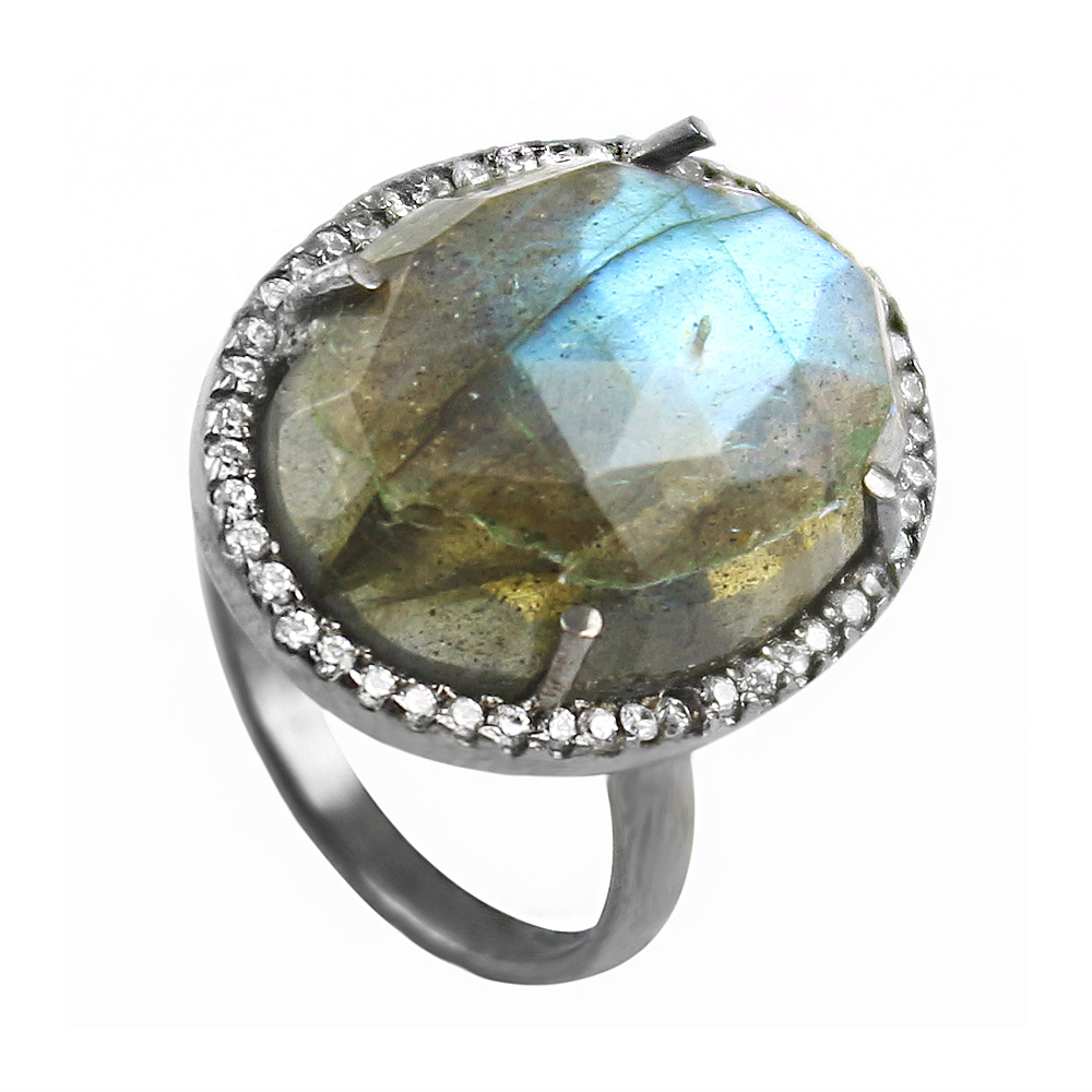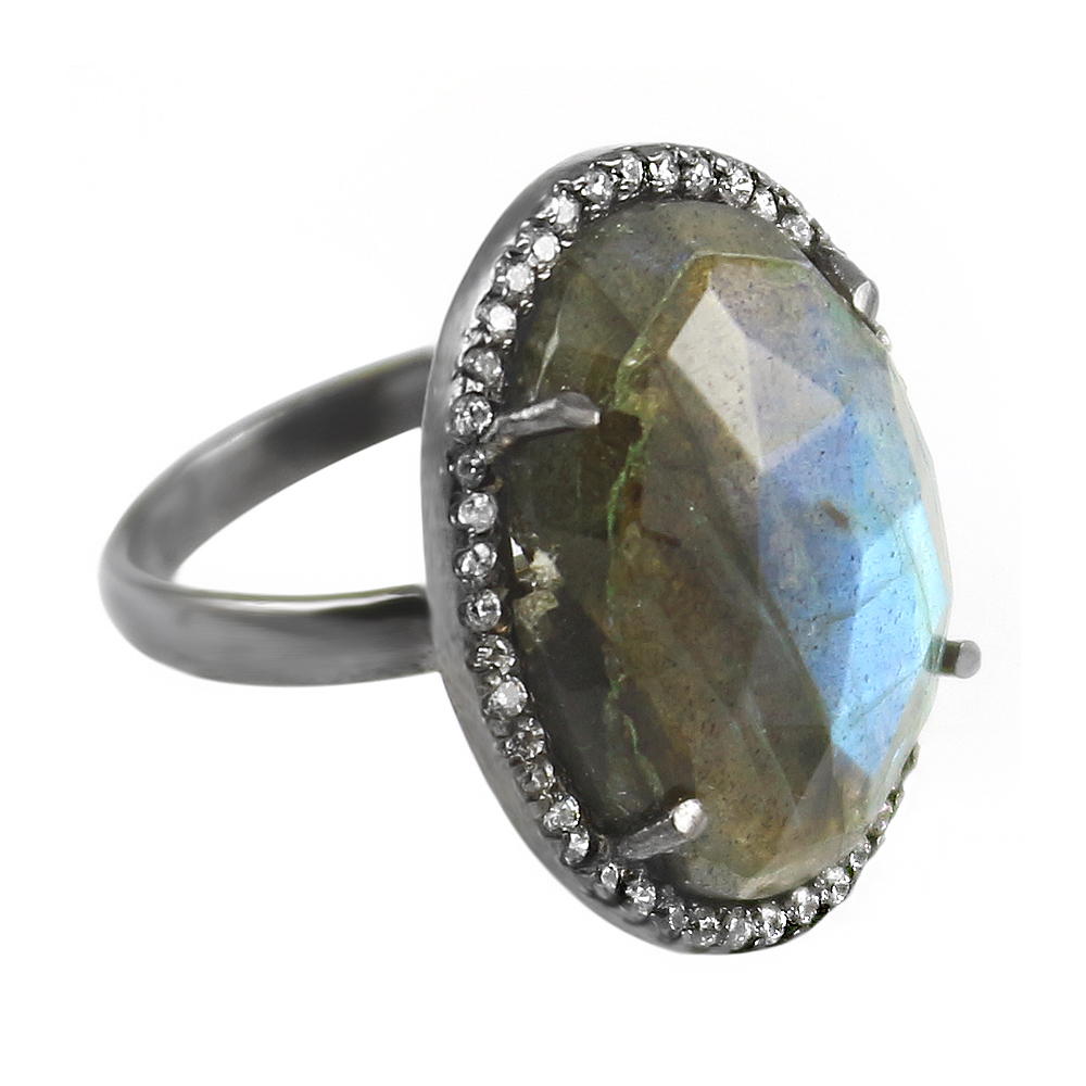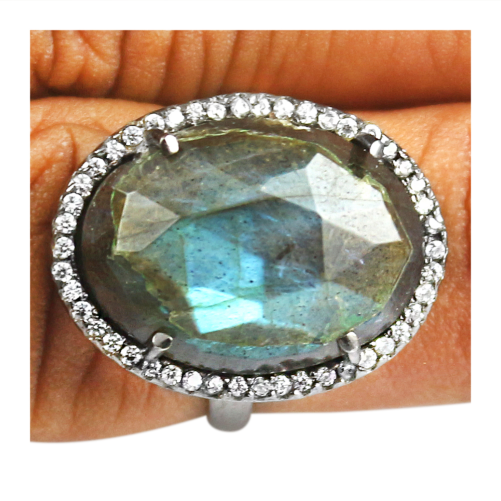 Vintage labradorite oval Cut Cocktail Cubic Zirconia Ring